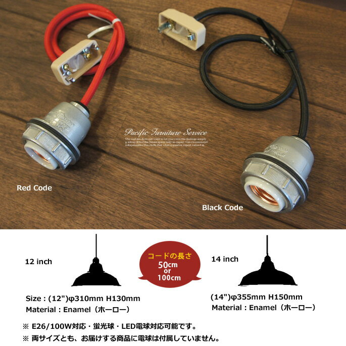 LAMP SHADE 14 SOCKETCORD コード50cm PACIFIC 使い勝手の良いシンプルなデザインの中にレトロ感、懐かしさを感じさせるアイテムを展開するPACIFICFURNITURESERVICE(パシフィックファニチャーサービス)のLAMPSHADE14(ランプシェード14)&SOCKETCORD(ソケットコード)HSI0002&HSS0001はホーロー仕上げのセードとカラーが選べるコードがおしゃれな雰囲気を演出する天井照明です。