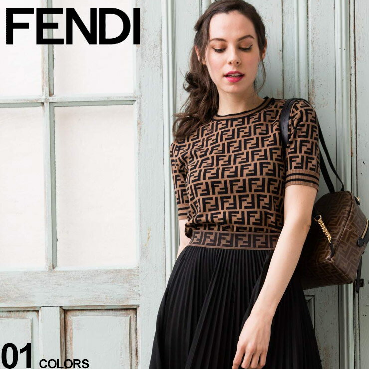 フェンディ レディース ニット 半袖 FENDI サマーニット FFロゴ ズッカ柄 クルーネック ニ …