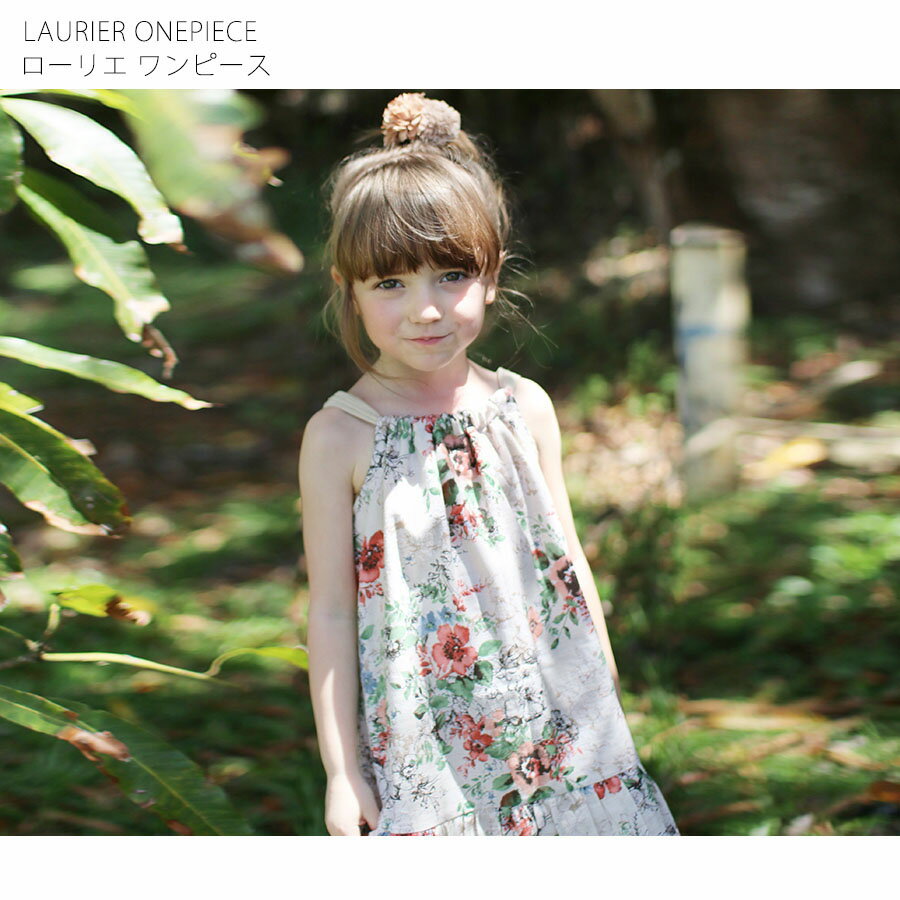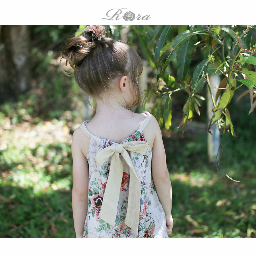子供服Rora ローリエ ワンピース 夏ワンピース キッズ 女の子 夏ワンピース 子供服 女の子 夏服 リネン ナチュラル カジュアル リボン おしゃれ ノースリーブ ワンピース キッズ 総柄 花柄 夏 かわいい 花柄ワンピース 90 100 110 120 130 140