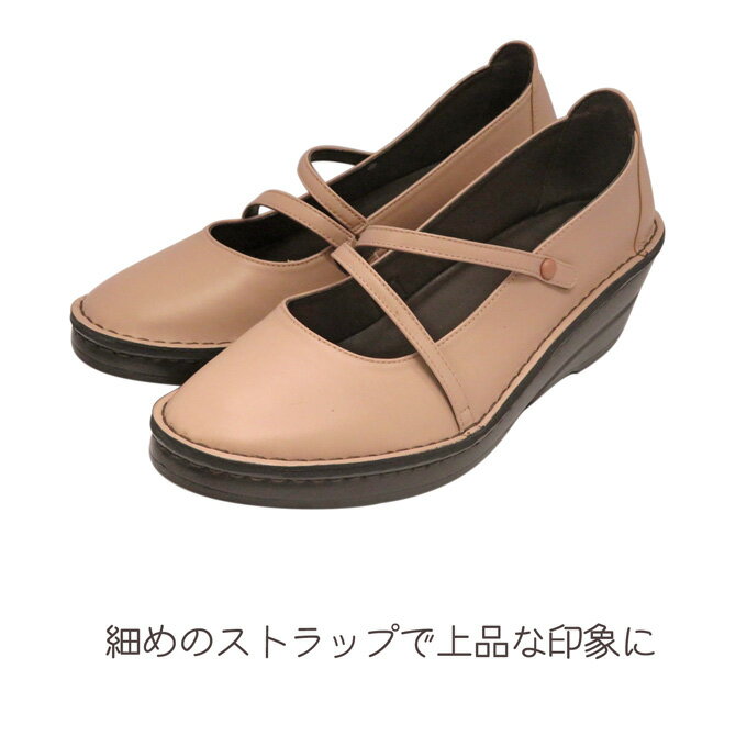 素材 本革(裏地:合皮) 底材 ウレタンソール(フットベッド仕様) ソールタイプ ラウンドウェッジソール(幅狭め・ヒール約5cm) ヒール 約5センチ ワイズ 2E 片足重量 約215g 底着地面最大幅 約8.5cm ※23.0cmの場合。