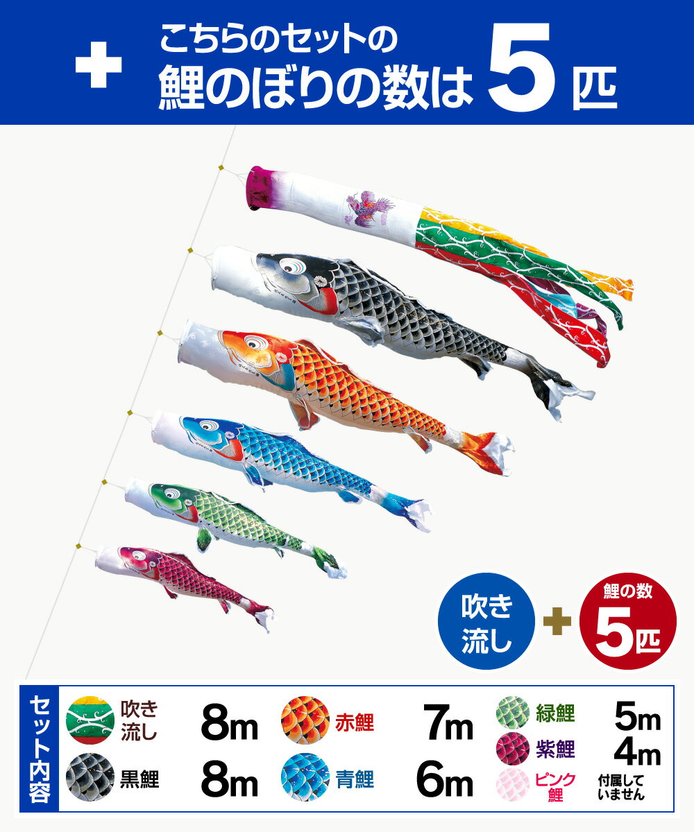 徳永鯉のぼり 吉兆鯉 8m 8点セット 庭園用大型セット ポール別売り 2020年初節句 端午の節句 こどもの日 こいのぼり