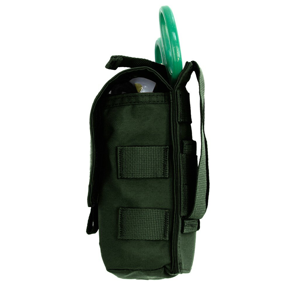 兵士の個人用医療キットである、コンバットガーゼや外傷用包帯、止血帯、医療ハサミなどを収納でき、メイン収納部にはウェビングストラップを装備し、ストラップを引く事で内容物を片手で引き出せる仕様となっています。