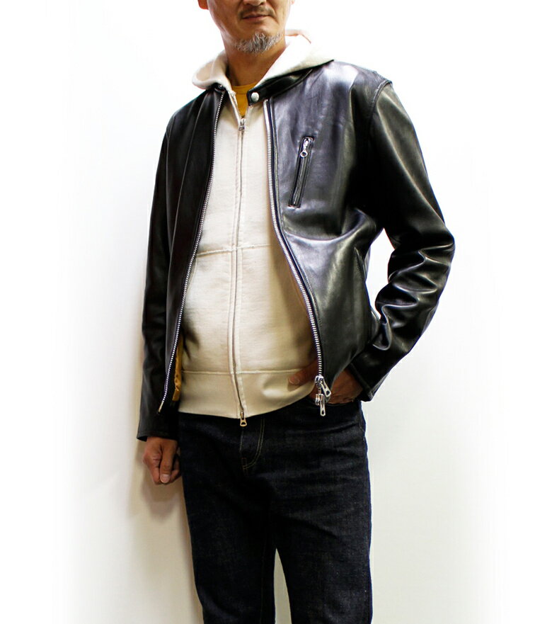 しかしこちらのジャケットは大判の革で縫製されているので、きれいなバックスタイルを楽しめます。