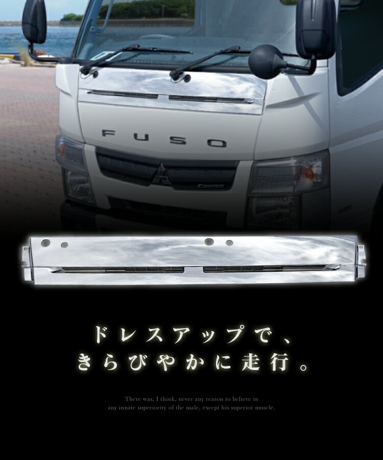 商品詳細 【商品名】 三菱 ふそう BLUE TEC CANTER ブルーテック キャンター 標準 メッキ フロント ワイパー パネル ABS製 新品 【適合】 平成22年11月〜の三菱 ふそう ブルーテック キャンター 標準に装着可能です。